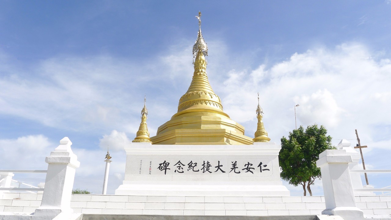 仁安羌大捷紀(jì)念碑 位于緬甸馬圭省仁安羌市伊洛瓦底江畔