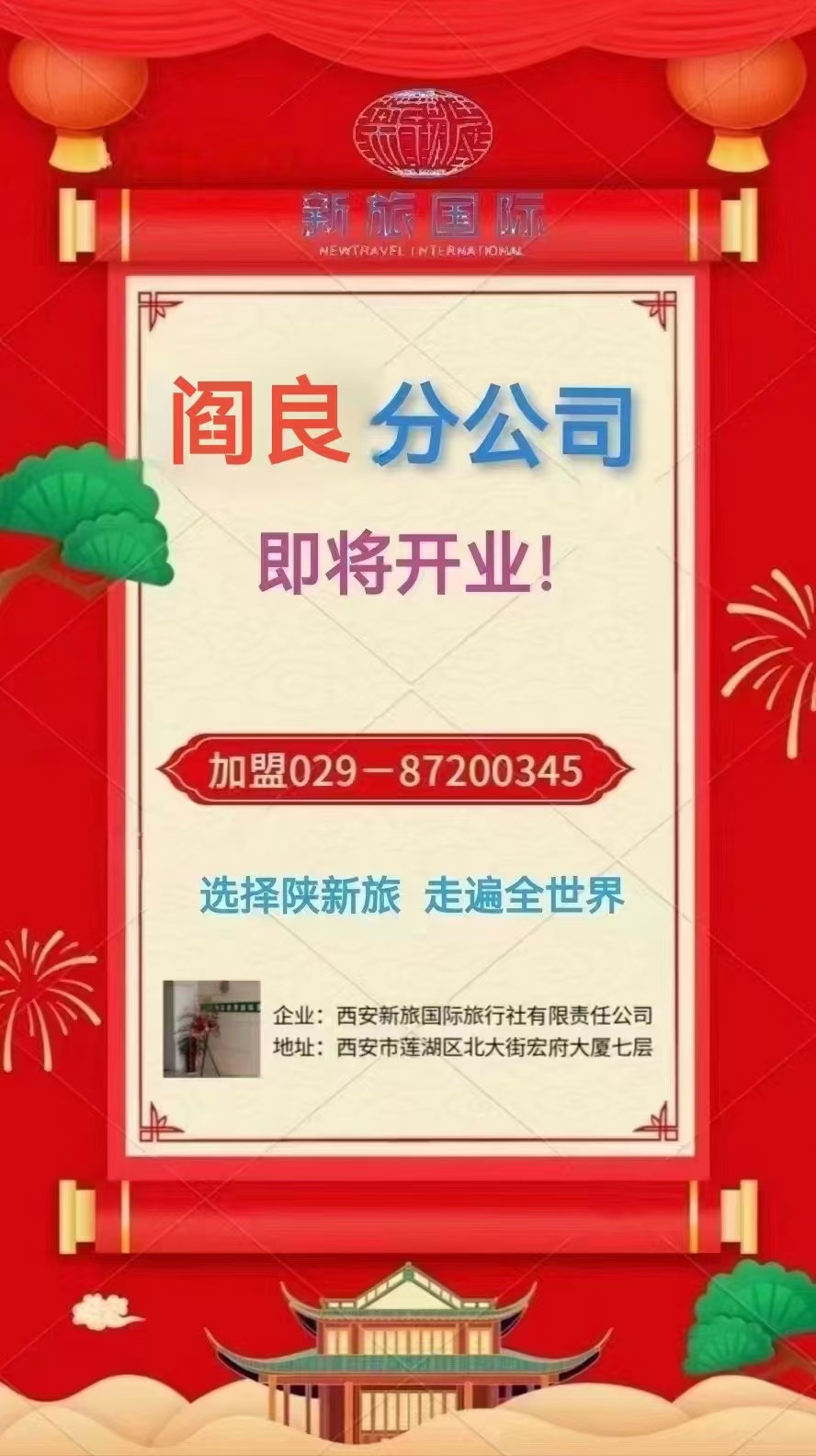 西安新旅國際旅行社有限責任公司閻良分公司 即將開業(yè)