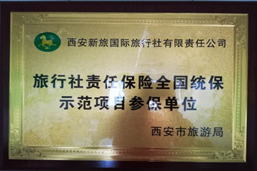 授予稱號:旅行社責(zé)任保險(xiǎn)全國統(tǒng)保示范項(xiàng)目參保單位